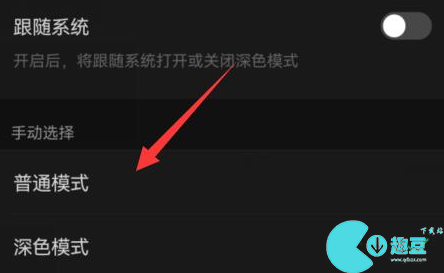 4、进入之后我们将“跟随系统”关闭,然后点击手动选择中的“普通模式”即可完成调校。