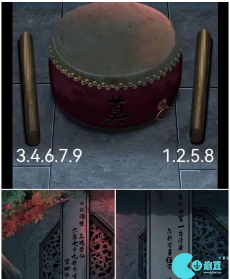 1.左右魂幡数字左34679、右1258,敲鼓开门。
