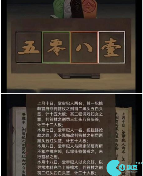 17.公堂,给人偶安装头颅和手臂,在盒子里放入知县的官印,根据审案记录解二元一次方程,打开签筒黑绿红白5081,得到虎眼。