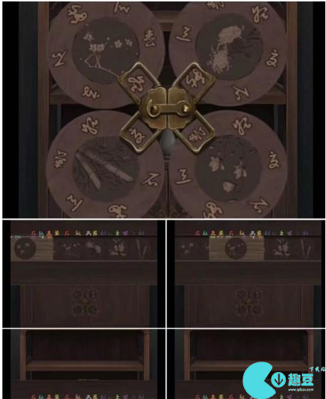 16.左边架子上方得到知县的官印,放入带孔木板,滑动得到梅兰竹菊信息打开柜子得到雕像的手臂。