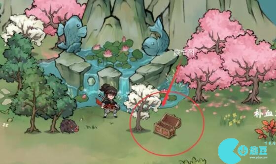 1、狼王附近的藏宝图,玩家在桃树的旁边靠近即可领取。