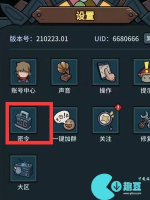 第二步:接着在设置界面点击密令按钮,如下图所示;