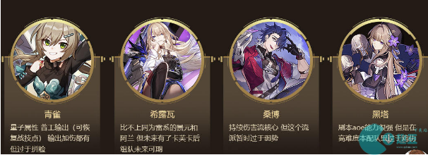 1、青雀:量子属性,普工输出(可恢复战技点),输出加伤都有但过于拼脸。
