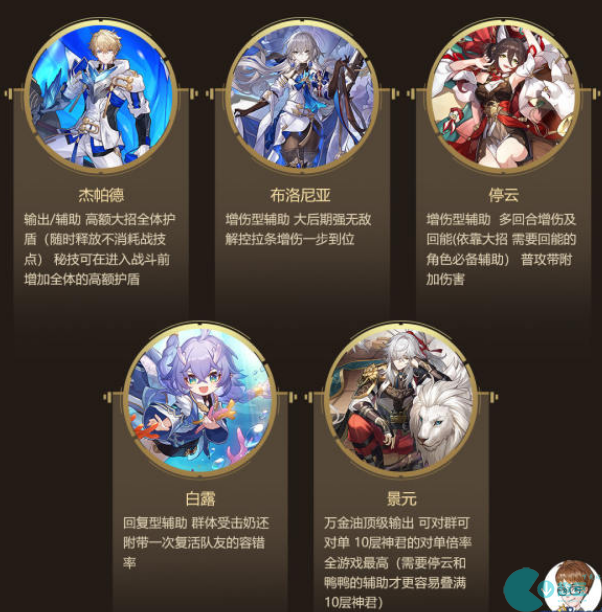 1、杰帕德:输出/辅助高额大招全体护盾(随时释放不消耗战技点),秘技可在进入战斗前增加全体的高额护盾