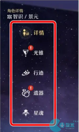 角色培养分为5个模块:**、光锥、遗器、行迹、星魂;