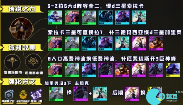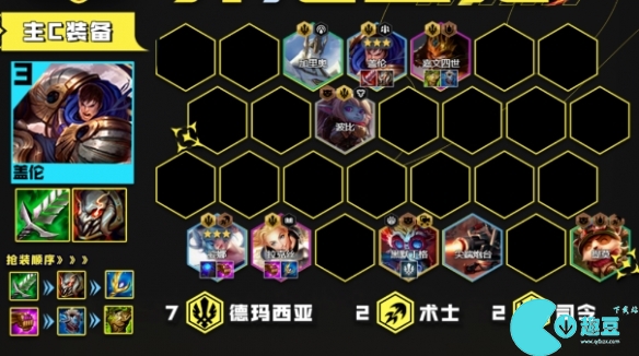 2. 阵容羁绊:7德玛西亚2术士2司令3约德尔