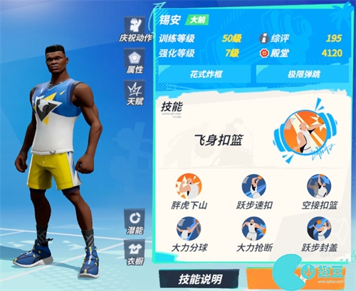 锡安的进攻技能多为扣篮技能,在防守端可以依靠“大力抢断”阻碍对方传球,同时依靠强大的弹跳能力,用“跃步封盖”阻碍对手投篮。