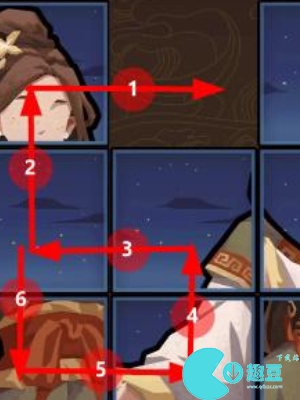 1、进入游戏中玩家根据下图提供的拼图步骤来操作移动,中间要保证不能出现错误。
