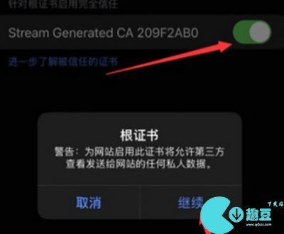 5、完成上面的操作之后,我们需要继续点击证书信任的设置,点击完成之后点击按钮就可以正常的使用。