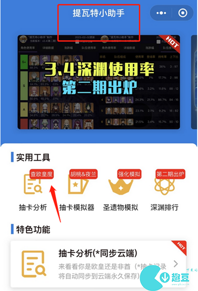 10、**我们再来到微信,打开【提瓦特小助手】,然后点击下方的【抽卡分析】的选项,将地址直接复制到输入框之内,**点击查询,等待即可。