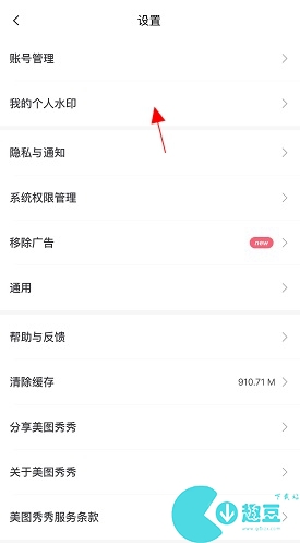 3、在设置中,点击“我的个人水印”。