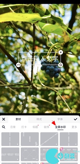 3、素材中点击“全屏水印”,选择一个喜欢的水印素材。