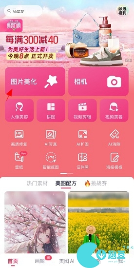 8、返回到美图秀秀首页界面,点击“图片美化”。