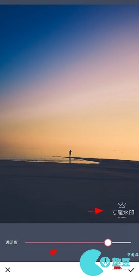 6、对水印进一步处理,调整水印的透明度,调整完毕后点击勾选。