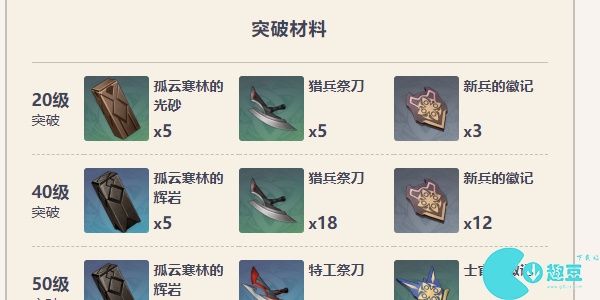 20级:孤云寒林的光砂5、猎兵祭刀5、新兵的徽记5;