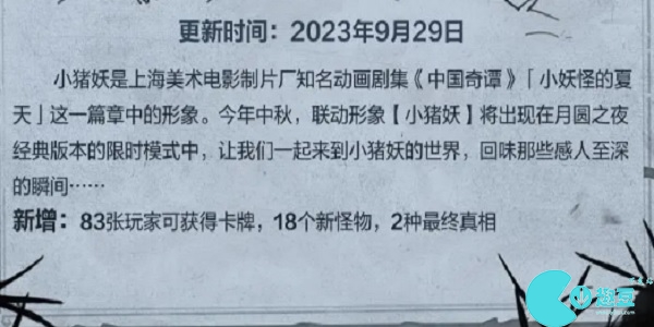 月圆之夜小猪妖联动什么时候上线? 《月圆之夜》和《**奇谭》的联动即将联动!此次联动的是《**奇谭》中的经典篇章《小妖怪的夏天》的【小猪妖】,那么【小猪妖】将在什么时候上线呢?来和小编一起看看吧。
