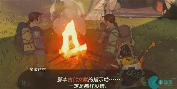 2、我们到达目的地之后,与多米达克他们进行对话,在对话中获取到宝藏的位置。