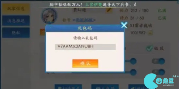 第三步:进入兑换码界面后,我们输入上方礼包兑换码并点击确认即可领取兑换奖励了。