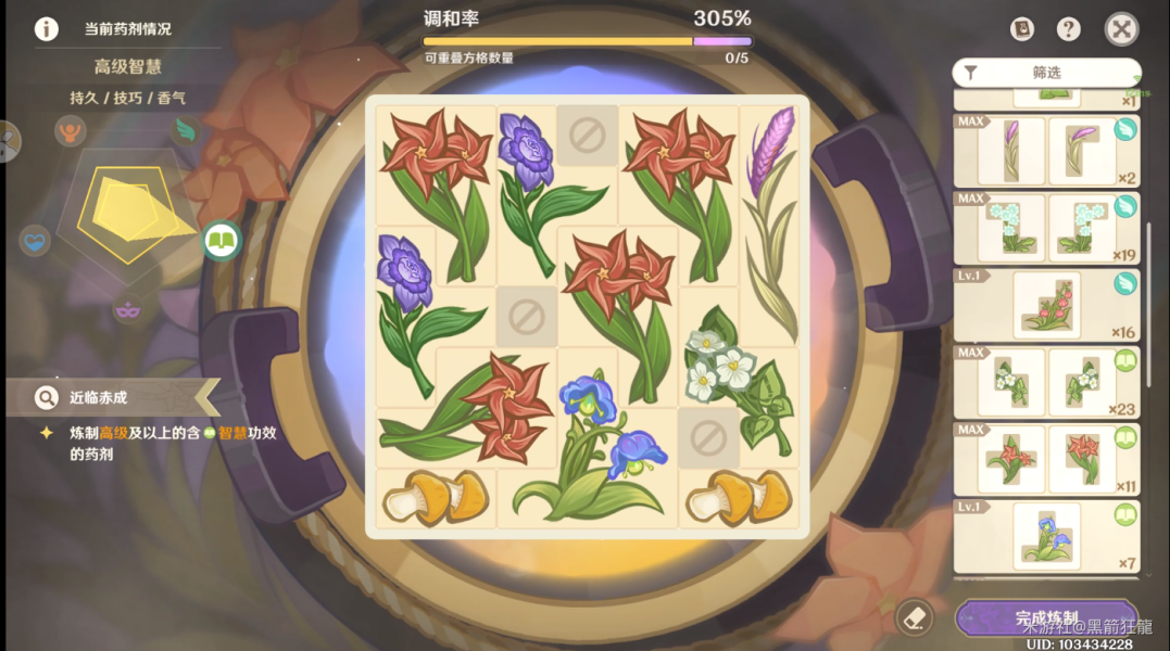 2.药剂品阶达到中级且药剂**达到 5