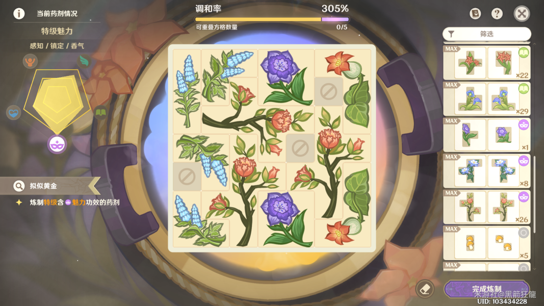 1.炼制**含魅力功效的药剂