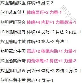 熊胆燕窝牛黄意志 2体魄内劲 1力量-1