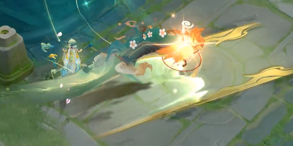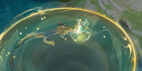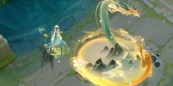 4、大招**:释放大招后,在大招的圆圈范围内有一条龙围绕着遨游,在圆圈的边缘我们可以看到山峦的投影。