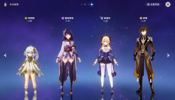 2、解析:这套是纳西妲和雷神的组合,在大世界探索中是可以很好体验的,雷神主c是很强的。