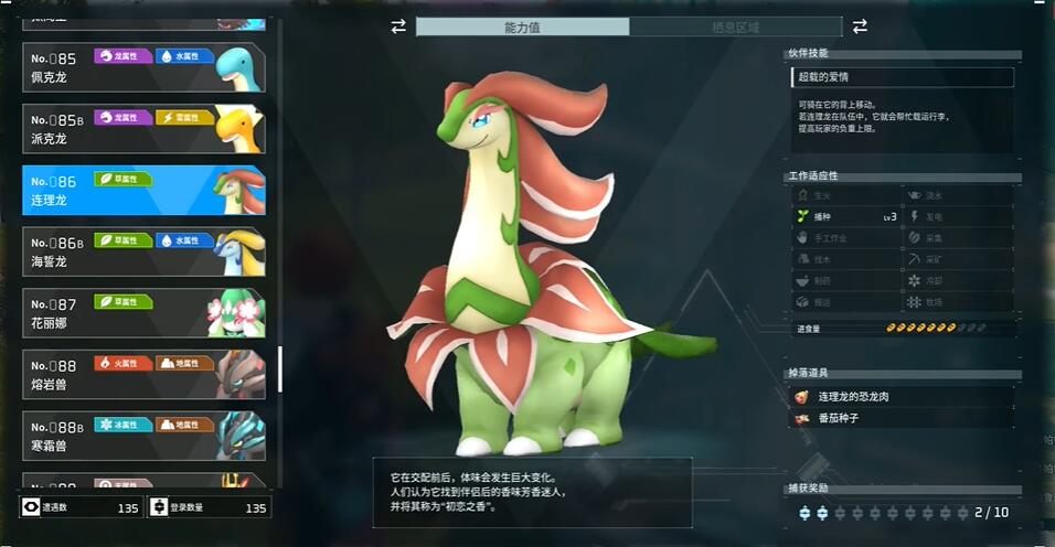 可骑在它的背上移动。若连理龙在队伍中,它就会帮忙载运行李,提高玩家的负重上限。