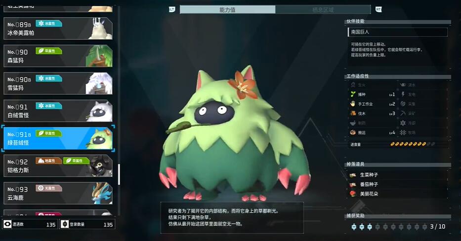 可骑在它的背上移动。若绿苔绒怪在队伍中,它就会帮忙载运行李,提高玩家的负重上限。