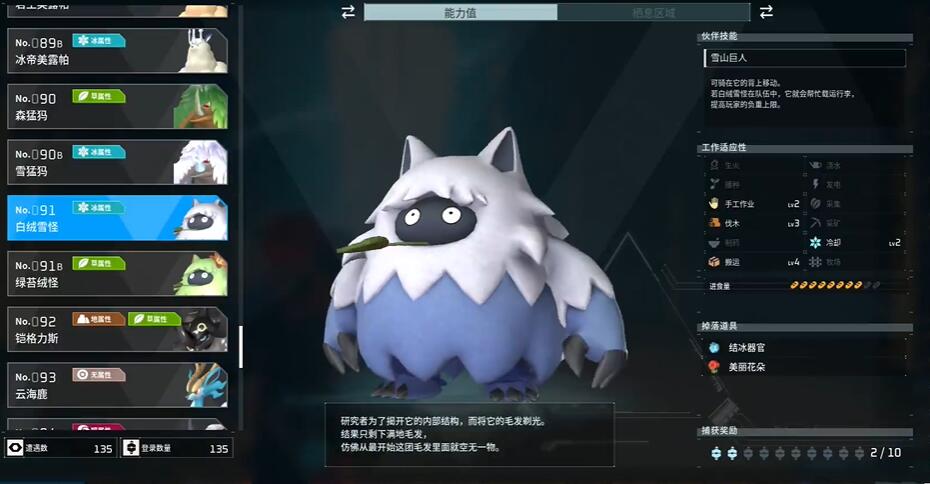 可骑在它的背上移动。若白绒雪怪在队伍中,它就会帮忙载运行李,提高玩家的负重上限。
