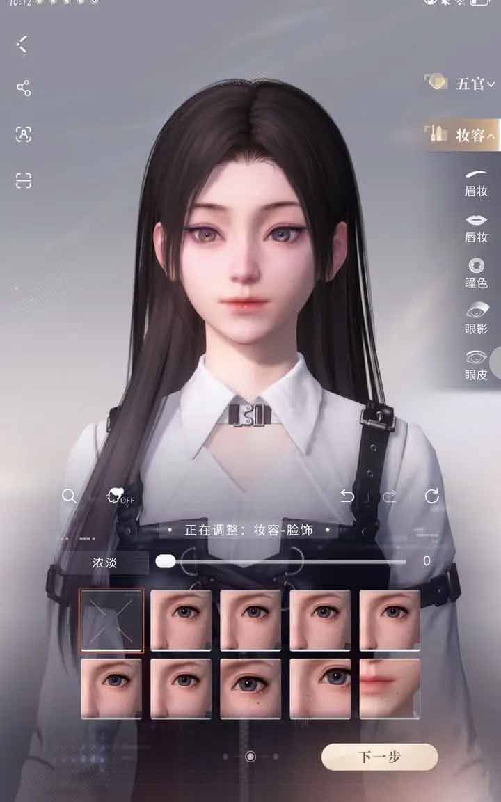 2、接着调整肤色,选择一个喜爱的肤色,点击【下一步】;