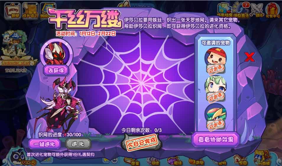 洛克王国千丝万缕活动咋做,新开放的活动难度不大的,就是要按照任务的规则来一步步的完成的,帮助伊莎贝拉织网完成任务挑战,完成任务可以获得进化**,下面就来介绍下洛克王国千丝万缕活动怎么玩。