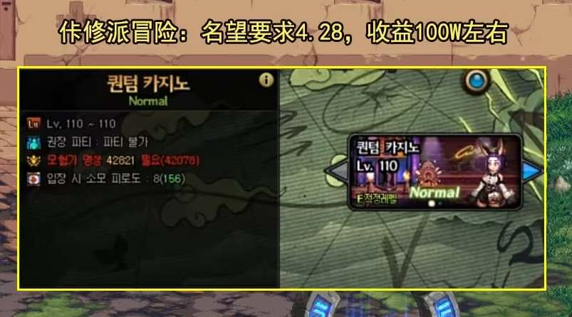 需要前30%名望,韩服当前名望要求50375。收益方面满疲劳、装备、加百利等大约在180万左右。