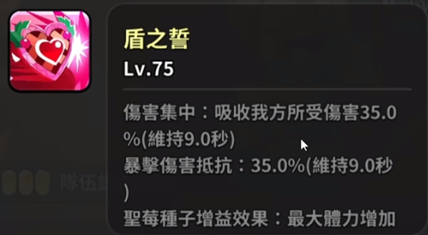 圣莓果的技能有一个持续9秒的伤害吸收,在竞技场上能抗住敌方伤害,用冷却配料能持续**。