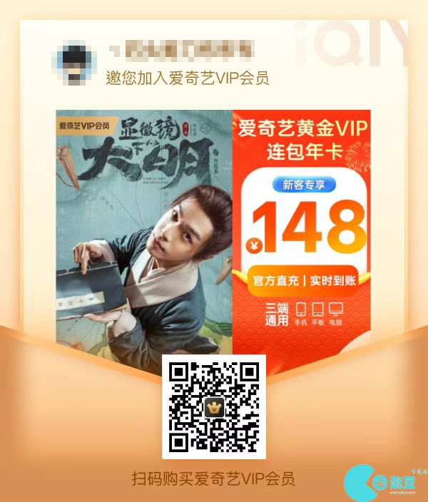 1、通过扫描下方二维码即可参与爱奇艺黄金vip连包年卡优惠活动