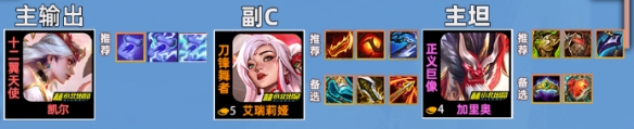 根据经济4-2或4-5拉8大d整体除5费卡两星,如果没转职经济特别好就直接上9,一般没刀妹可先用卡莎副c,没有7剪纸就找两星卡莎和两星加里奥稳血上9。