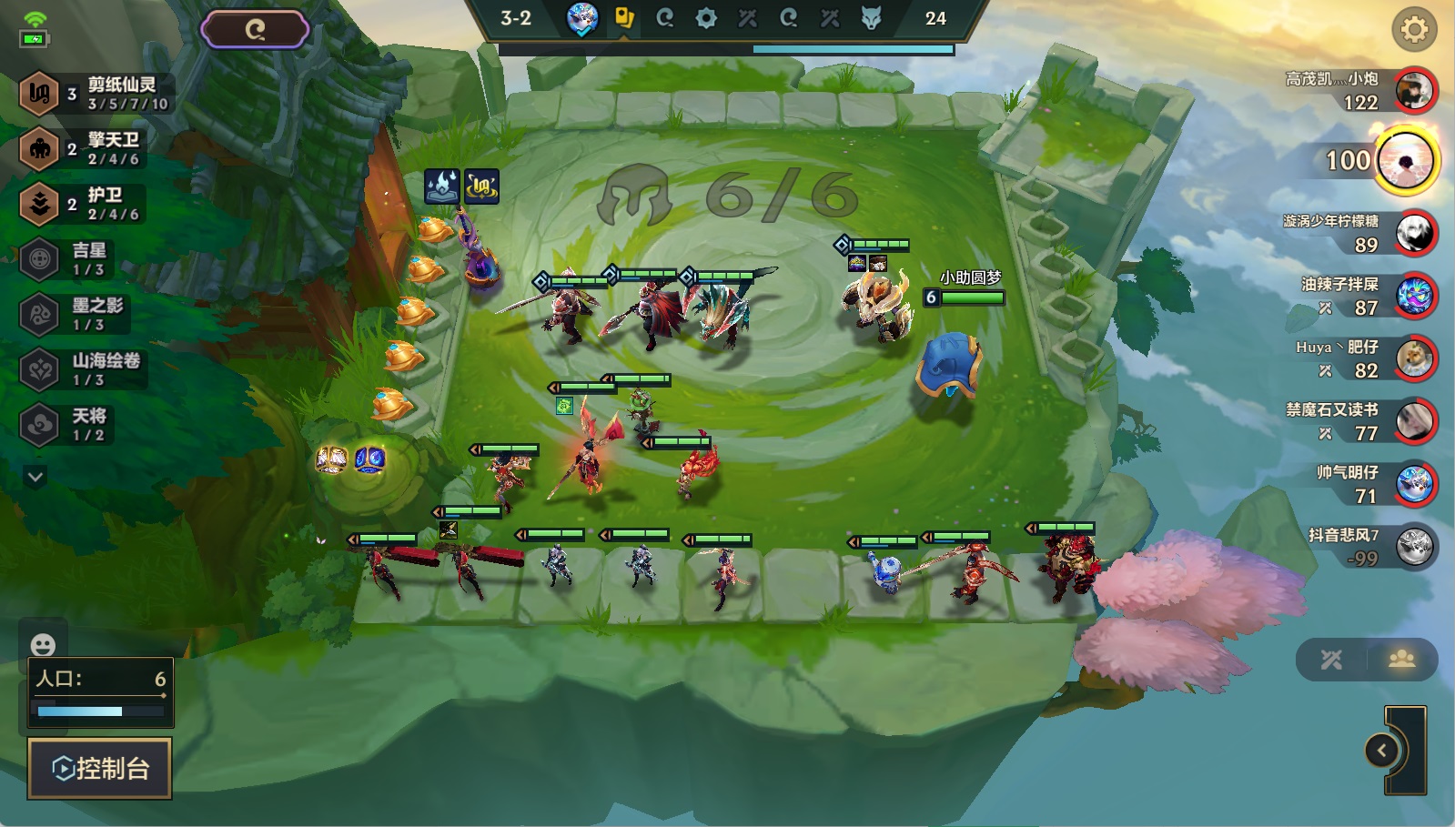 3-2拉6,补充羁绊不d牌,留剪纸仙灵基础牌,优先开5剪纸仙灵。