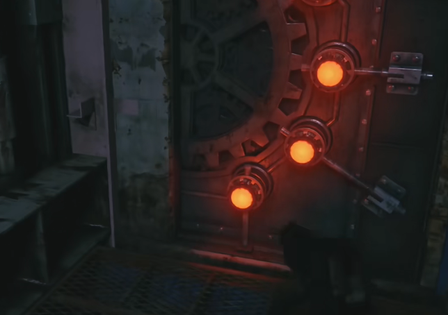 2、触发机关后,下降至工厂前面,进入工厂后走进左前方的门,后遇到海森伯格,触发剧情。