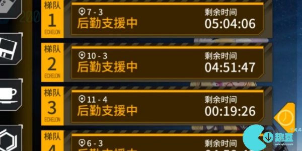 游戏中的后勤支援行动可以提供**数量的资源;但是每一个活动需要消耗**的时间才可以获取,而且后勤小组最多不能超过四个。