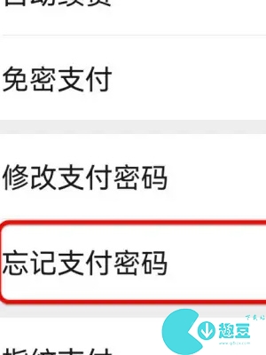 3、接着在支付设置界面找到”忘记支付密码“选项,点击并且进入;