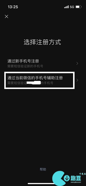4、然后选择【通过当前微信的手机号辅助注册】,进入到这里。