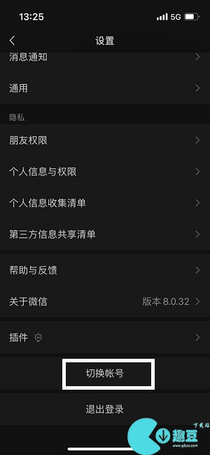 2、向下滑动,选择【切换账号】,进入到切换账号的界面中。