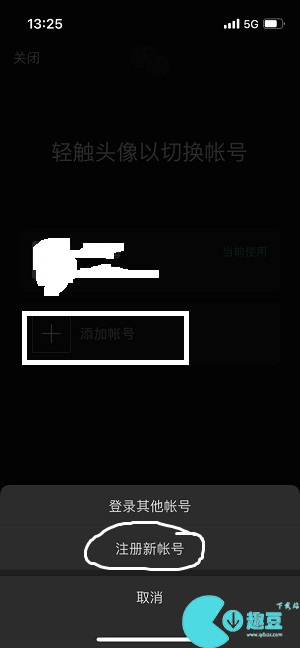 3、点击图中的【添加账号】,选择下面的【注册新账号】。