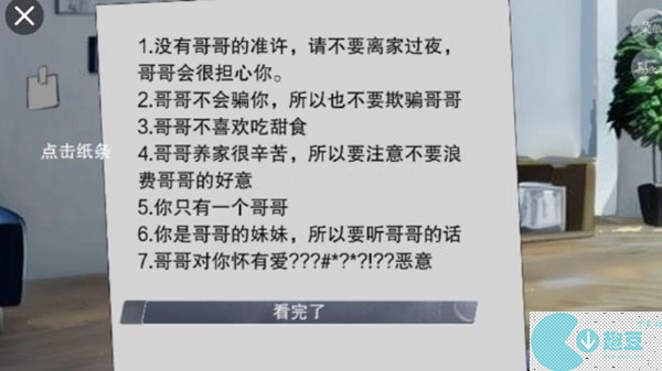 外面大地图时若点击,去哥哥公司,会过完剧情直接与哥哥回家(可以先去其他地方再去哥哥公司)。