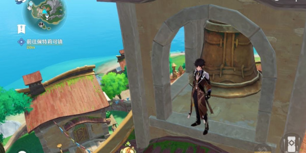 1、首先需要解锁佩特莉可镇,在下图钟楼顶部发现老旧的铭刻。