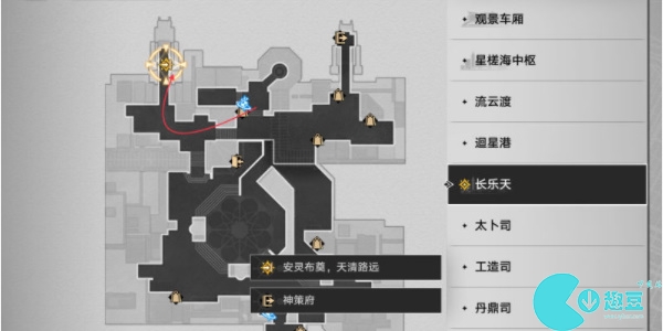 7、接着来到星槎海**中间的锚点,传送过来往后,就是剧情动画。看完动画后,回到长乐天神策府;进来就能看到前面的景元,走过去进行对话;对话结束后开拓者的团队就要离开仙舟了。