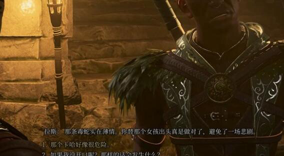 2、然后与拉斯对话,前提是之前在卡哈手下救人,拉斯也表示卡哈不是好人;