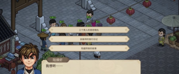 1、在大梁城找到下图所示的npc,听他说书,有三个故事给我们选择。