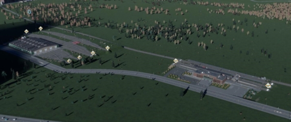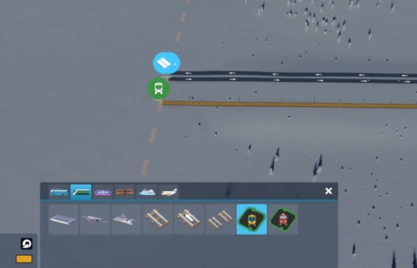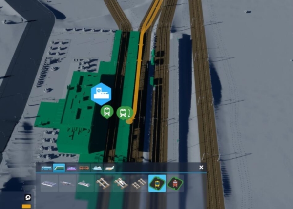 1.首先玩家先要建立火车站以及火车总站,**平行于连接外界的火车道, 如图所示,这样火车道不会出现角度过大的问题。