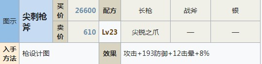 尖刺枪斧是武器之一,用长枪 战斧 银 尖锐之爪制作。